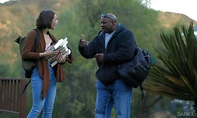 Young white girl experiments with big dark-hued cock