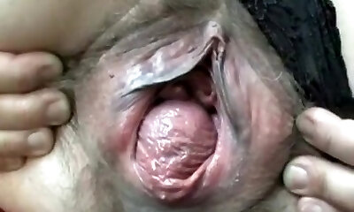 Bbw self knuckle. Double fist. Gaping unshaved pussy.