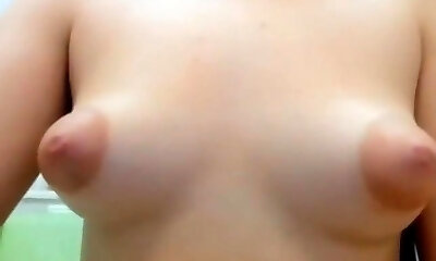 Kinky amateur slender chick plays with her big perky nipples