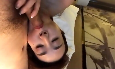 Chinese slut woman carrying her husband blowjob