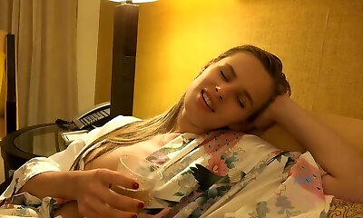 Handsome platinum-blonde girlfriend Affina Kisser loves sitting on a dildo