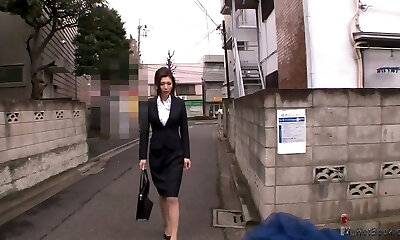 Japanese office slut with pretty nice milk cans gets mouthfucked by co-workers