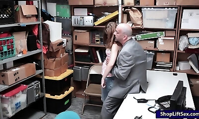 beautiful shoplifter Aliya Brynn is punished by horny security guy