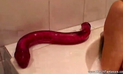 Pervy amateur redhead fools around with monstrous tentacle in solo