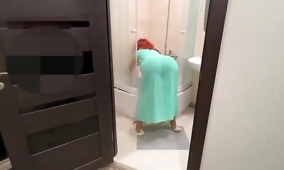 Slut with massive booty changes clothes and gets captured by a spy cam